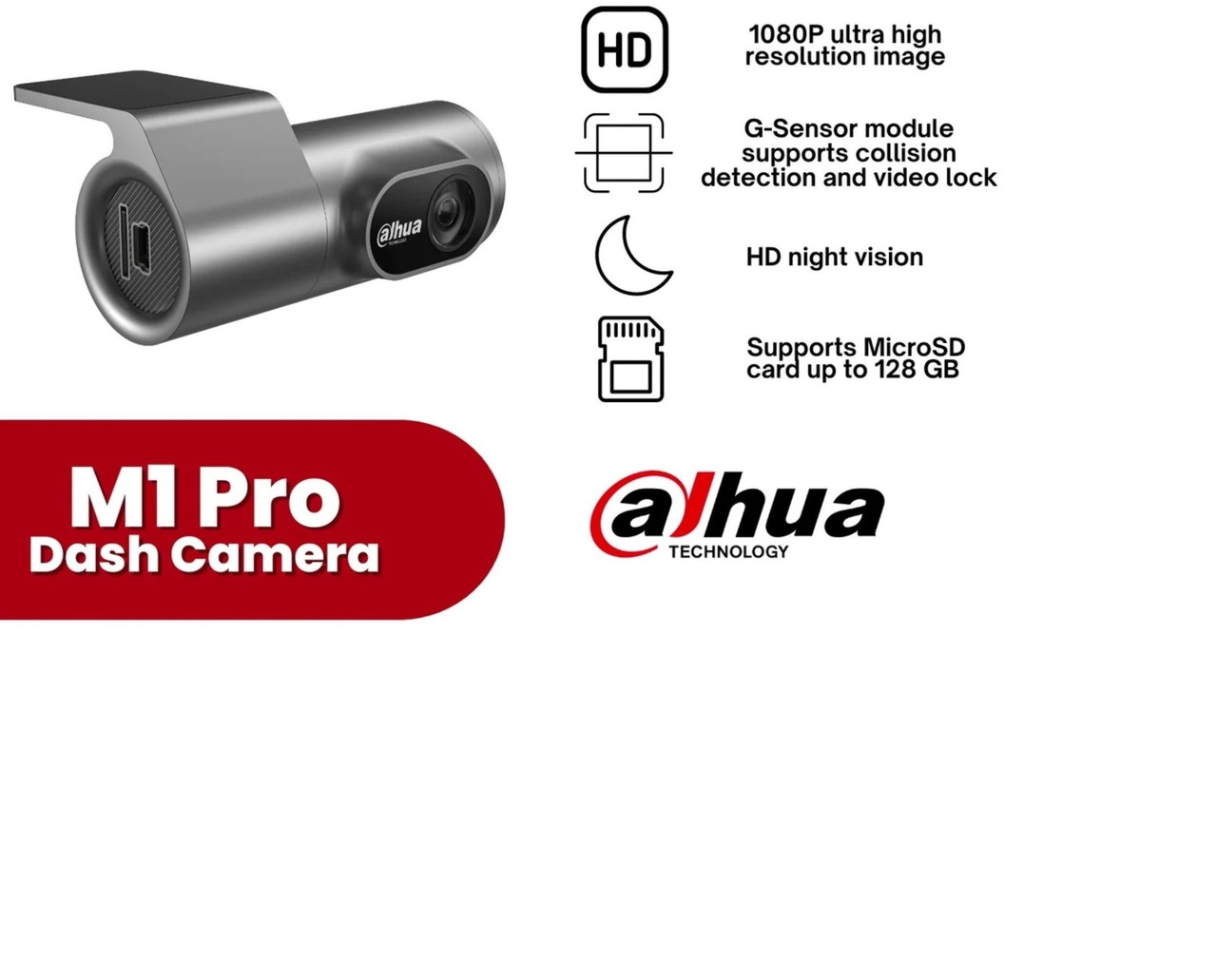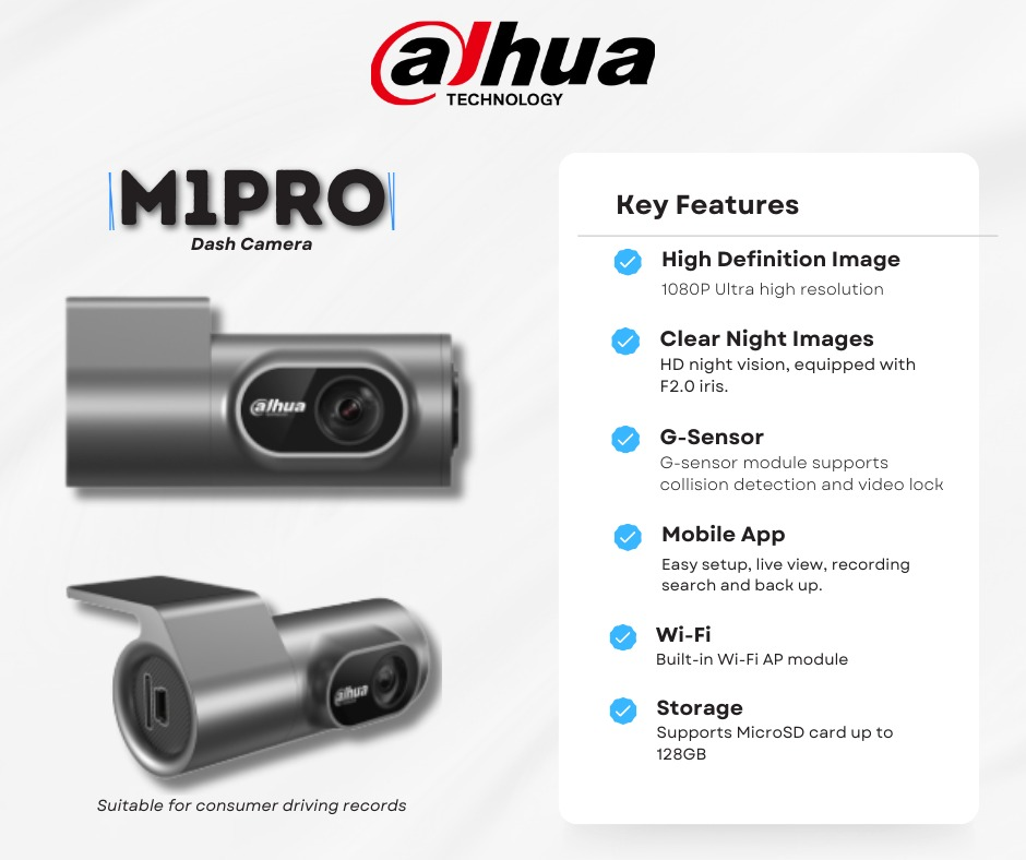 كاميرا سيارة Dash Cam Dahua M1 Pro – تسجيل Full HD + Wi-Fi + رؤية ليلية قوية